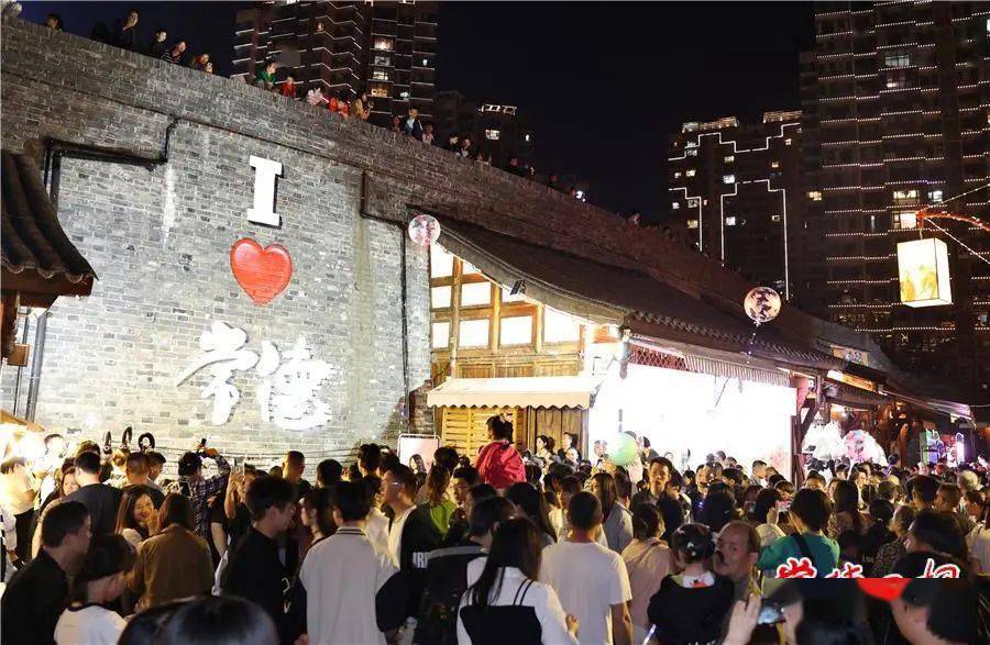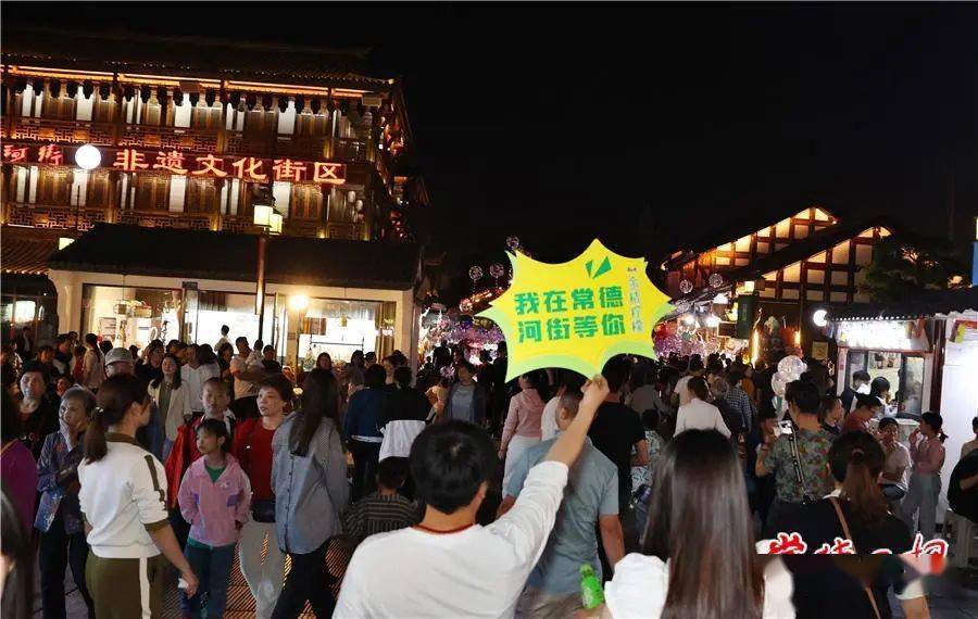据常德市经投资管经营有限责任公司工作人员谢雨静介绍,当天,常德河街全天预计 接待游客超过10万人。游客主要集中在18时至22时之间,以参观非遗国潮集市、品尝各种美食、乘坐游船观看《常德记忆》大型灯光实景演艺秀为主。