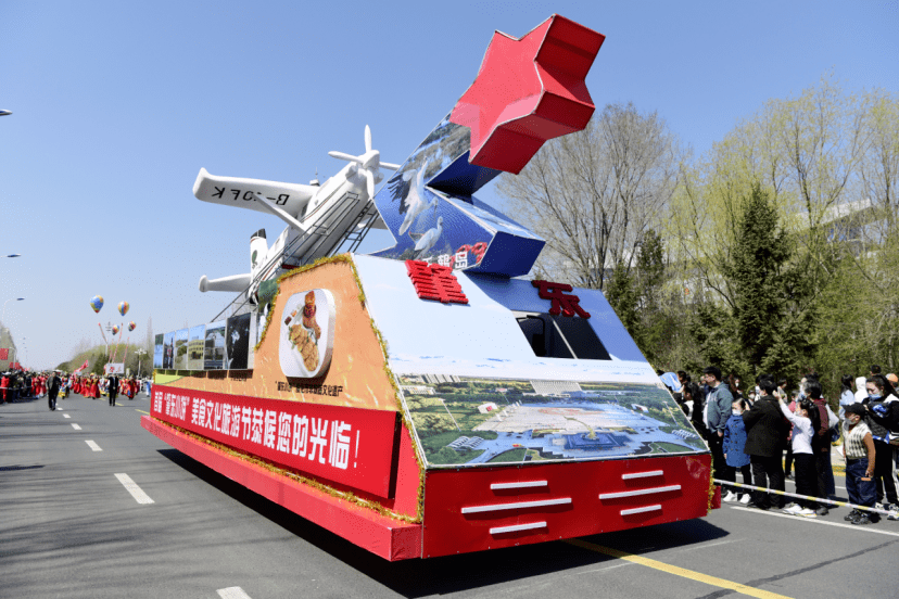 彰显各县域文化旅游资源特点的10辆主题花车悉数亮相。