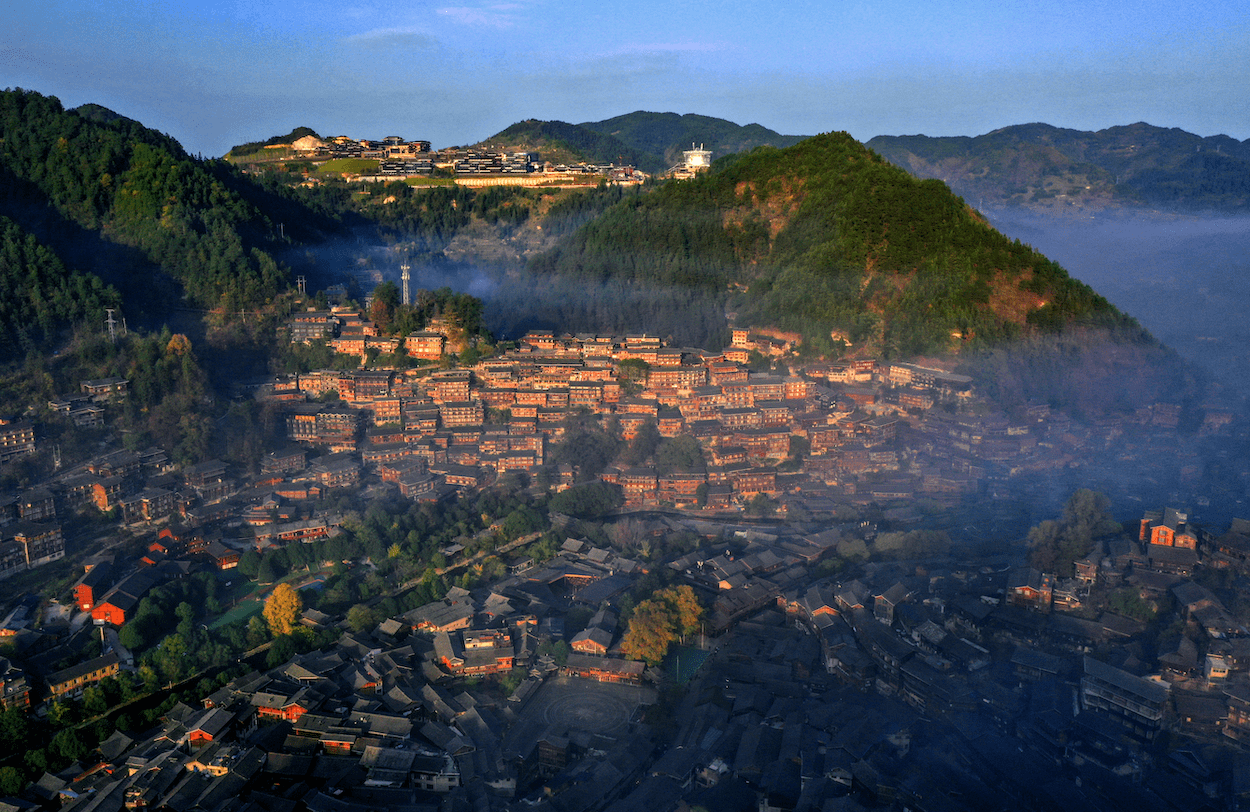 依山而建的西江千户苗寨犹如一座“露天博物馆”,展示苗族发展的史诗。钟传坤 摄(贵州图片库 发)
