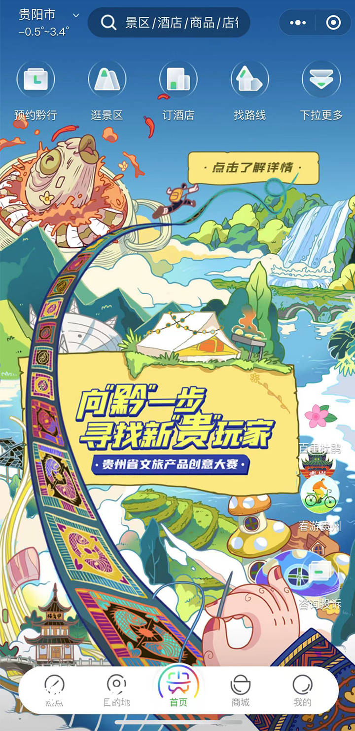 以微信小程序“一码游贵州”为例,它作为贵州的全域智慧旅游平台,已经成为了游客的必备数字帮手之一。目前,“一码游贵州”接入A级以上景区500多家、酒店3.9万余家、商户6.2万多家、特色商品2.4万多种,累计访问量4.6亿次、服务游客3427万人。
