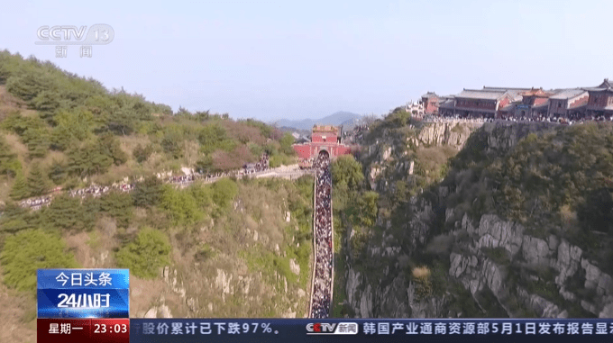 为做好旅游服务保障,泰山景区引导游客分时入山、错峰游览,在中天门、南天门等区域启用了分流疏导站和分流盘道。