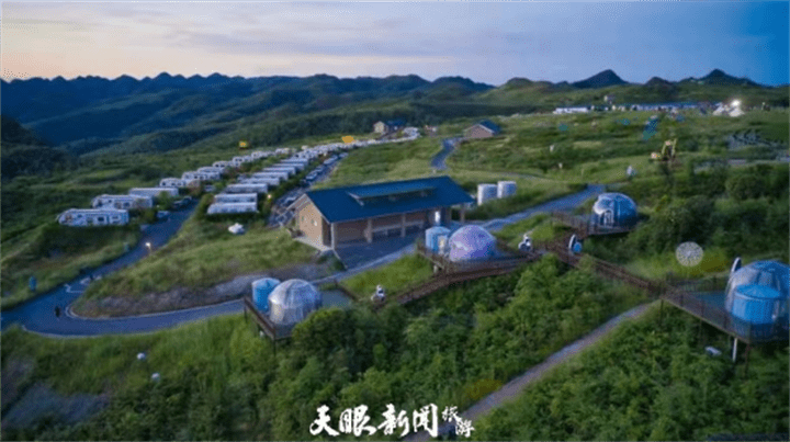 油杉河景区海拔最高处,就是崔苏坝国际露营基地所在地。基地里有高端定制固定式房车、360°星空泡泡屋等。