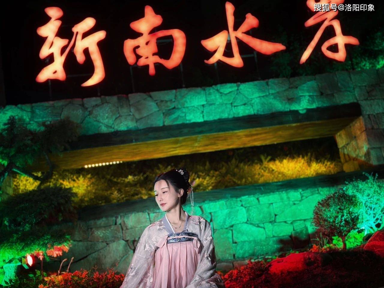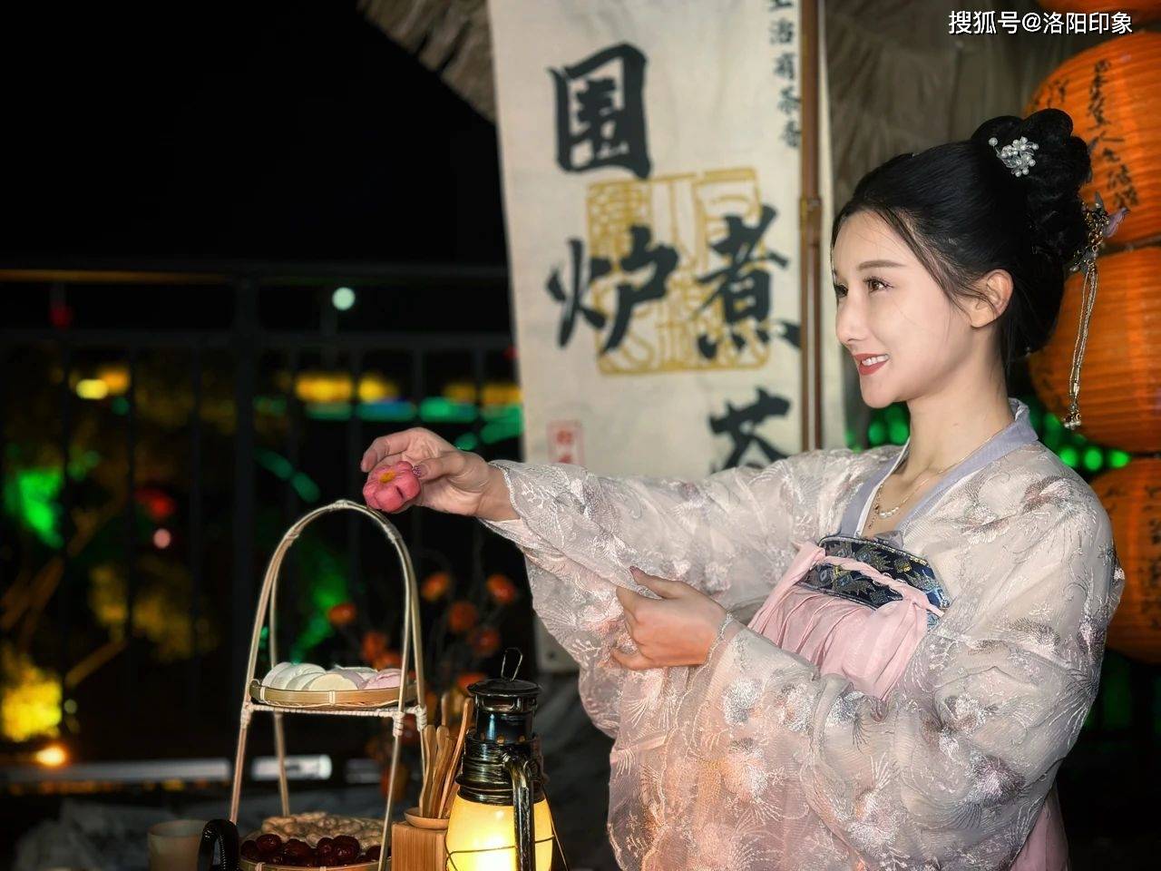 朱阁璀璨入画,罗衣锦绣如云,年轻人裙裾飘飘、团扇遮面穿梭于历史遗迹间、流连在花丛中……
