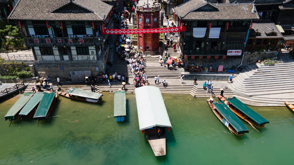 秀山县洪安古镇的边城景区以“穿越时空”为主题,通过在老街打造国民时期集市场景、万年台循环播放《边城》电影、洪茶渡口还原演绎翠翠和爷爷经营拉拉渡场景等丰富多彩的文旅活动,积极打造全域旅游品牌,持续激发乡村旅游市场活力,带动农民致富,助力乡村振兴。