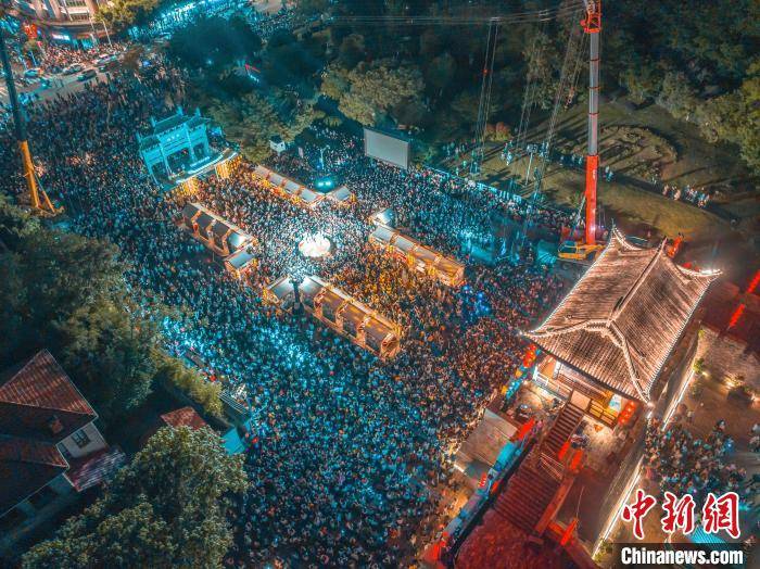 4月30日,“五一”假期第二日,航拍位于江西赣州的江南宋城历史文化街区,只见人潮涌动,灯火璀璨。当晚,精彩的宋潮不夜城·花朝节表演吸引了众多游客驻足观看。江南宋城历史文化街区包括5个历史文化街区和一个传统风貌街区,以及文保单位所处的区域,围绕古宋城文化及赣南客家民俗、历史人文、非物质文化遗产及民间技艺等特色地方文化,将文创、演艺、文化与商业融合,串起了宋城文化的精彩记忆,充分展示了街区文化古韵。