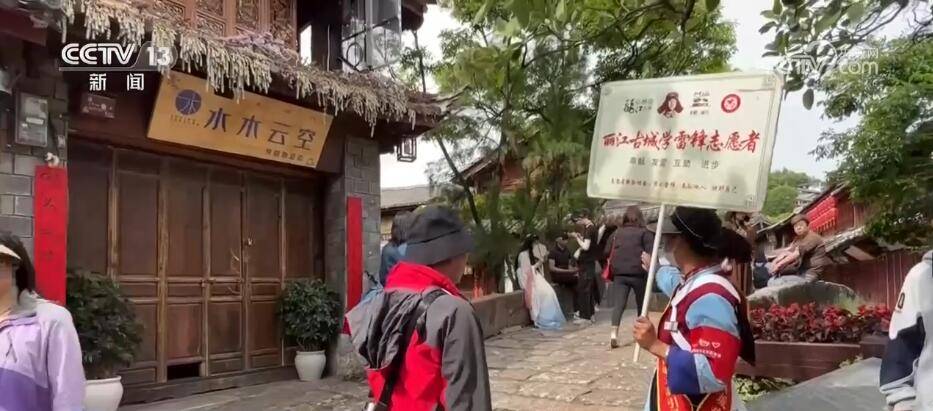客流渐增,丽江古城也出台多项举措。我们在现场可以看到,时常会有路过巡逻的安保人员,还有很多景区志愿者。据了解,志愿者的人数从平时的20多人增加到了现在的100多人,他们分布在古城的大街小巷,为游客提供旅游服务,并与环卫、公安等部门形成联动机制,确保第一时间处置处理突发情况。游客进入景区需要预约,景区也会确保游客量不超过核定承载量。同时,景区提前制定了三级预警机制,随时开启560个智慧应急疏导广播,启动27块智能引导屏,进行安全提示和人流疏导。