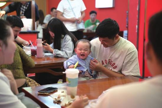 赵先生来自江苏,这次带着爱人孩子一起来到长沙游玩。“刚下高铁就被人群给震撼到了,来到夜市更是大为震撼。”赵先生说,他自己想吃烧烤,孩子想吃甜品,爱人想喝奶茶,本来想着在夜市里分头行动,但夜市里人山人海,他们只能一家三口抱团行动。“如果分散,估计打电话都听不到。干脆抱团行动算了,排到什么就买什么,虽然排队等待的时间会长一点,但把东西吃到肚子里后,就感觉排了这么久的队还是值得的。”