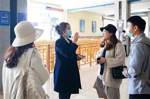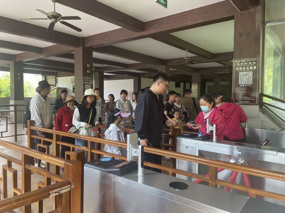 景区工作人员主动询问游客购票情况,告知游客提前线上购票,确保游客能够迅速,方便地入园。