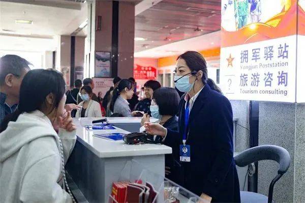 景区工作人员提供疑问解答、购票讲解、乘车指引等服务。