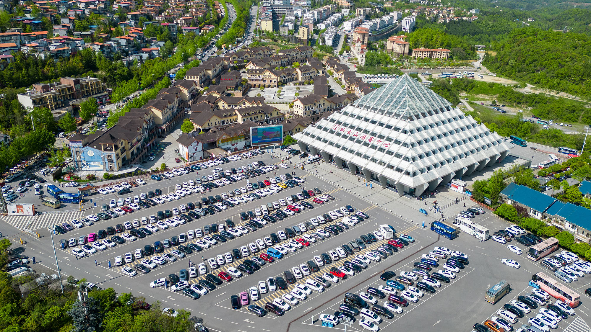 武隆每个景区都设置多个临时停车场,供自驾车辆免费停靠,车辆停放井然有序。