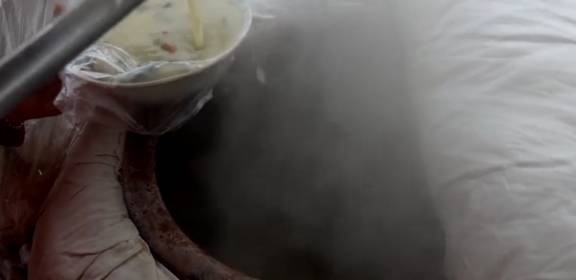 这家小吃摊是一对夫妻经营制作的,生意好到什么程度呢?小吴看到的时候,早就已经被顾客们围住了,想挤进去都很难。这家店卖的小吃是一种汤,而且四十年以来夫妻俩就只卖这种汤。一大锅汤,一碗只需要3元钱。