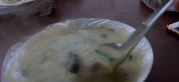 每天店里都要煮两口一米大锅的添沫,一碗分量其实是非常足的,三元钱的价格确实是很便宜。周末的话,可能就得制作出5缸才购买,因为当地人实在是很喜欢吃这样的小吃。小吴也来了一碗,吃起来的话还不错,小吴喜欢甜口味的。你怎么看呢?