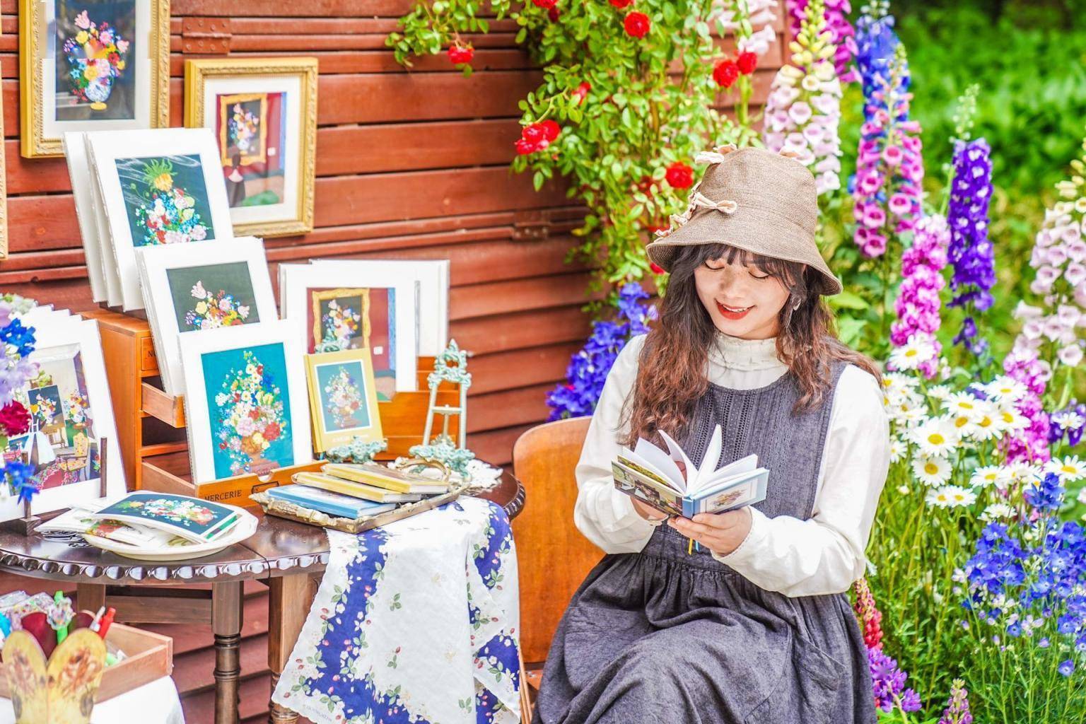 花园市集开市,三十余家花植品牌现场展示,景观设计风格源于印象派艺术家雷诺阿作品,营造出自然治愈的花园小镇场景。