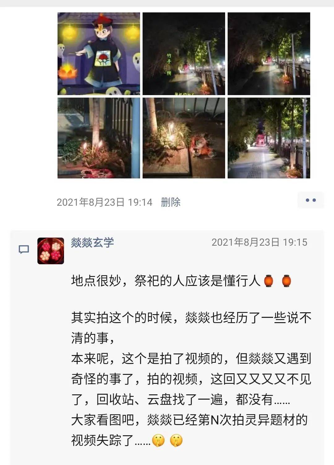探访老民俗多年的燚燚,就发现每次去探访阴气重的地方、拍十字路口的烧香纸,