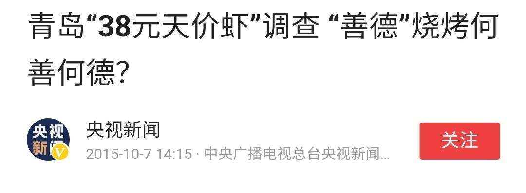 2015年,一位四川游客在青岛吃了一盘大虾,菜单上明明写的是38元一份,可结账的时候老板却按38元一只来算。