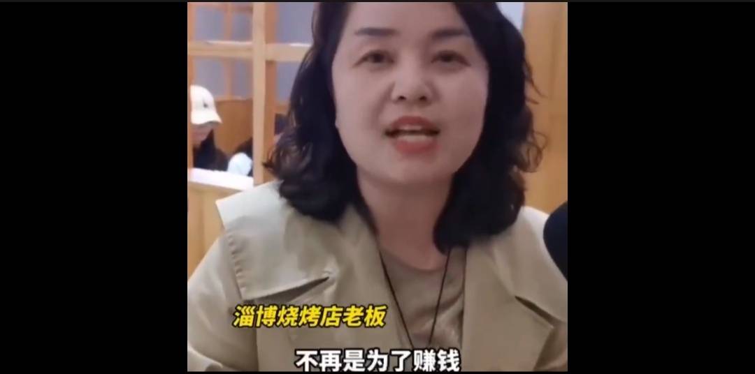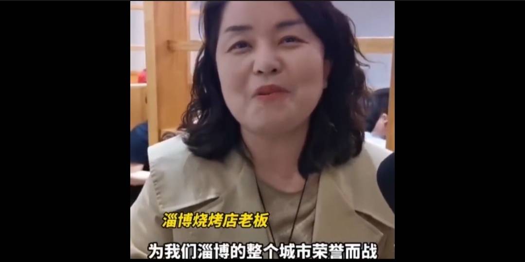 淄博烧烤如今俨然已经从地方美食上升到全民荣誉了,比如这位漂亮的老板娘。
