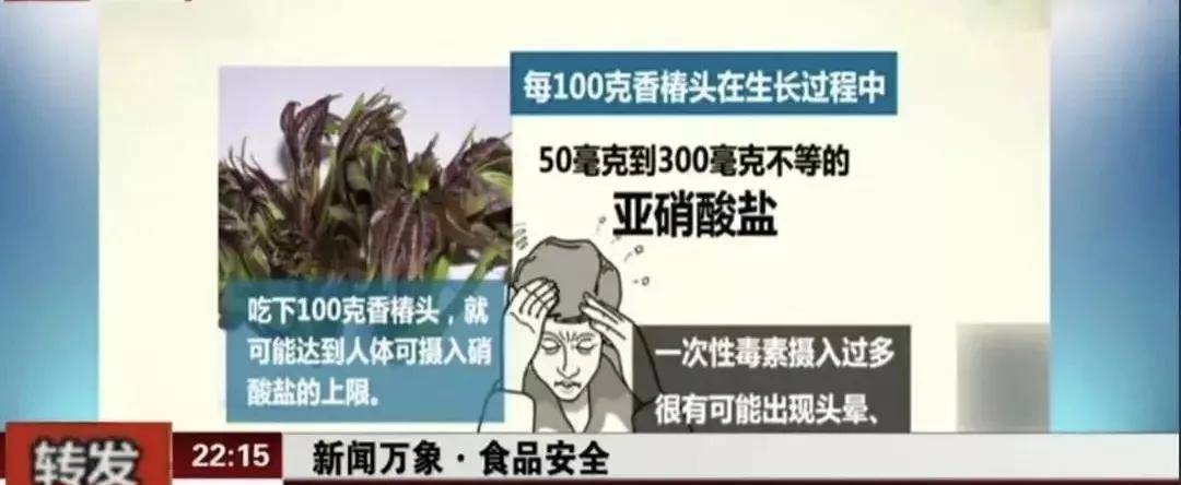 首先,很明显,香椿中含有亚硝酸盐。其中,芽的亚硝酸盐含量为7.5mg/kg,老枝条含量为11.1mg/kg。