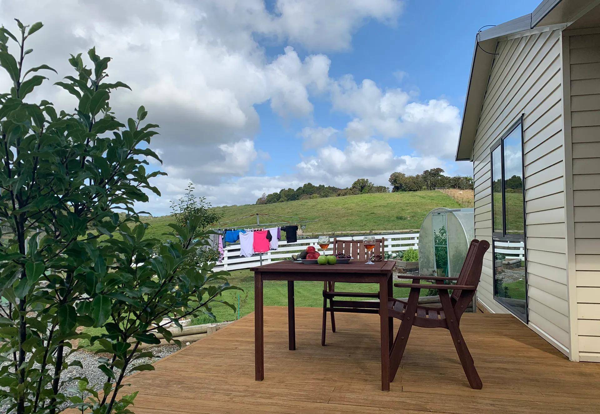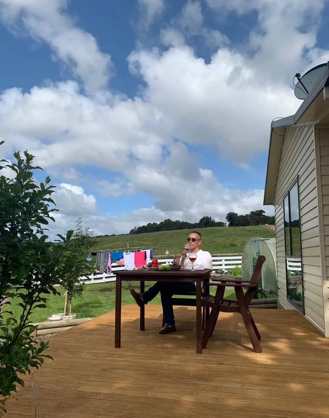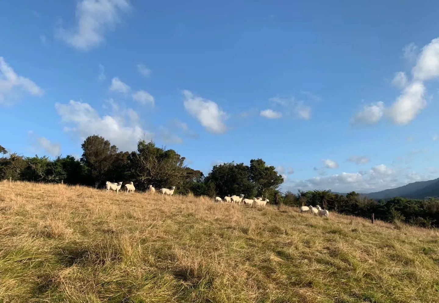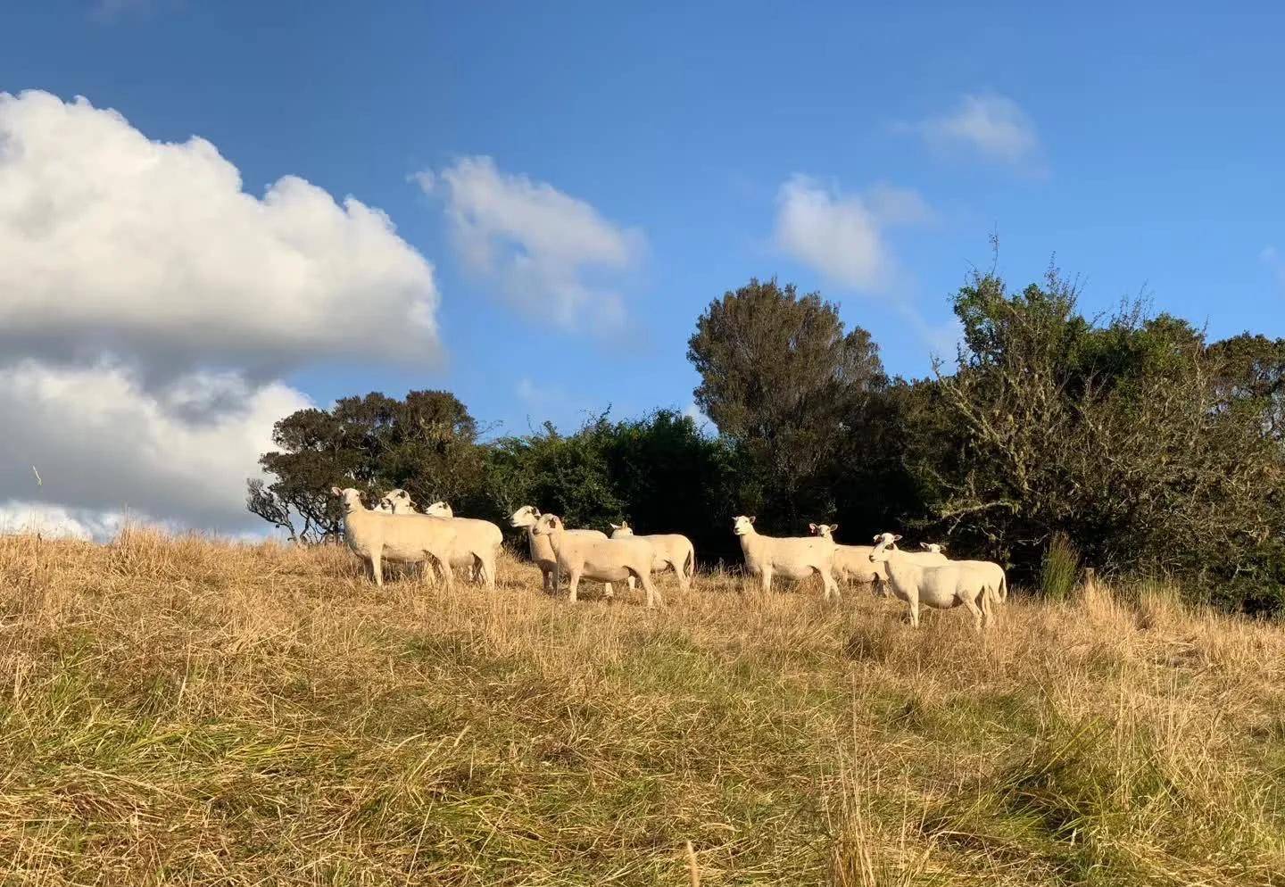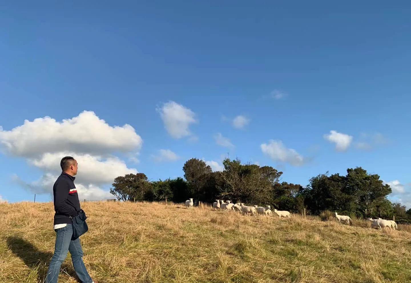 格雷茅斯入住的橡树林酒店的主人是个农场主,周边起码上百亩牧场的主人,同时也经营家庭酒店。当初决定住这里就是想去看看新西兰牧场,男主人带我们去牧场看羊,羊群可能怕生,躲起来往高处走,我们也不好意思继续靠近,远远地合影。交流中得知主人夫妻经营牧场、酒店,还自己种菜养鸡,过着悠然自得的生活。