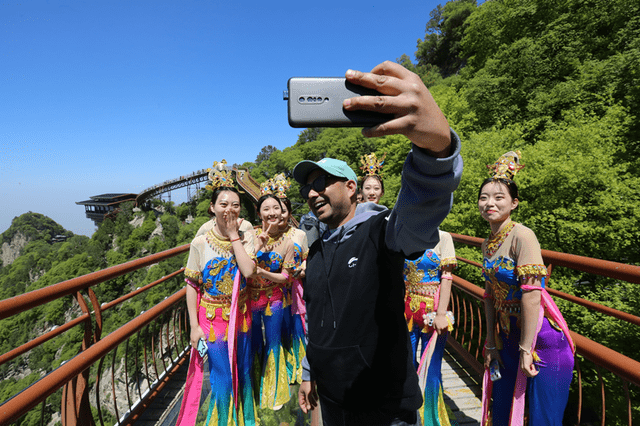 “五一”假期的少华山可谓“仙侠味儿”十足,景区精心策划推出以“仙侠情缘 舞乐少华”为主题的少华山第二届华服礼乐会,来这里的游客不仅可以感受浓浓的国风古韵,免费体验凝结时空的“子弹时间”,还可以在藏龙云海广场享受一场唯美的视觉盛宴——经典舞蹈《踏歌》、《只此青绿》、《飞天琵琶》、《唐宫夜宴》在山水间上演。