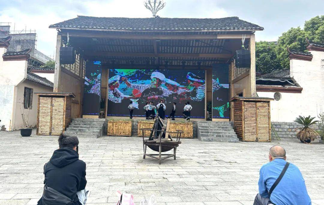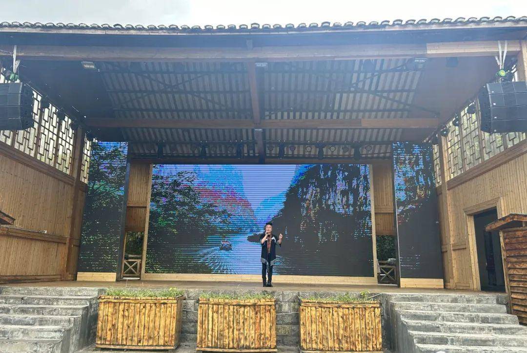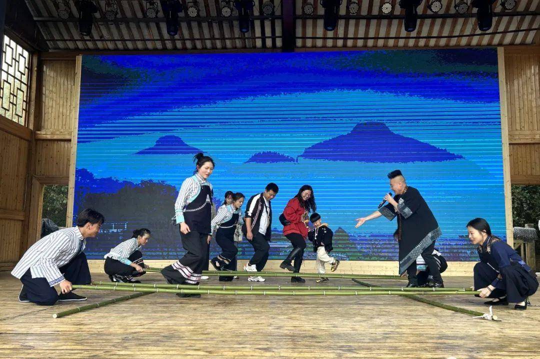 “五一”假期第一天,记者来到双乳峰景区,正在举行民族风情表演,双人舞《布依圣境》、独唱《我在贵州等你》、双人合唱《恋恋布依》等节目精彩纷呈,演出中还穿插了竹竿舞等互动环节,让游客体验民族传统文化魅力,共享民俗文化大餐。