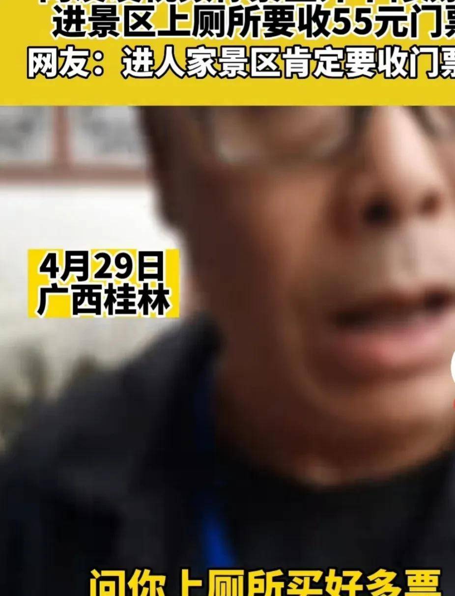 广西木龙湖景区,游客进入景区内使用厕所,却被要求购买55元的景区门票。