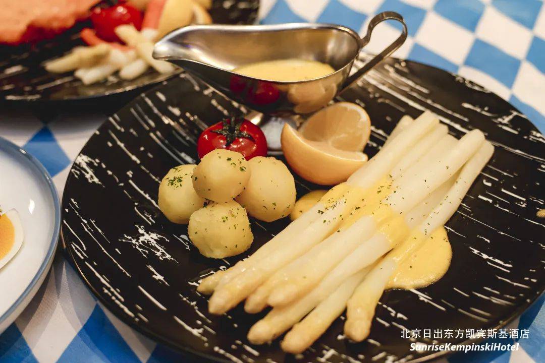 特色菜单中,将提供德式手工传统碱水面包;前菜有清香美味的白芦笋沙拉或奶油白芦笋汤; 主菜即有金黄香脆的维也纳煎鸡排配白芦笋,亦有滑嫩香甜的银鳕鱼配白芦笋等;特色甜品则有顺滑的白桃树莓慕斯及德国经典的黑森林蛋糕。每道菜品精致且富有浓浓春味及德式特色。