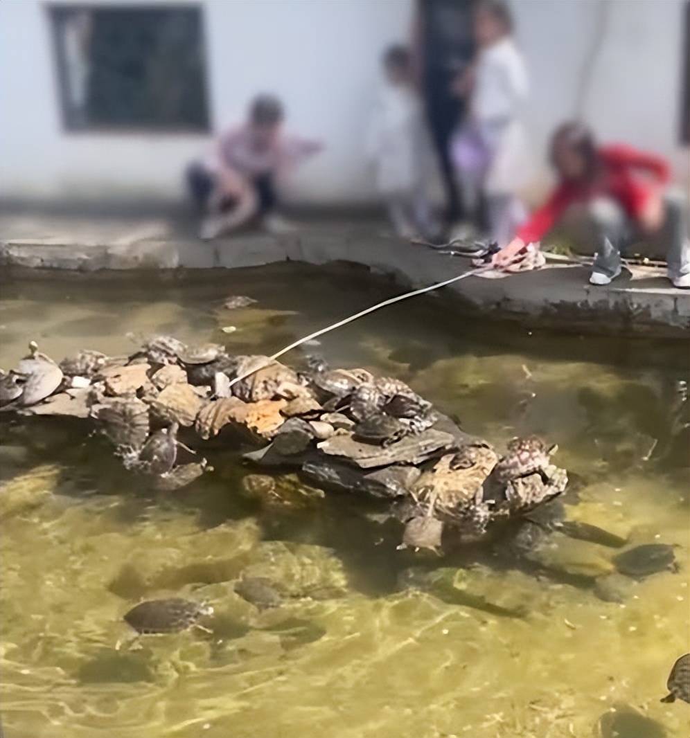 据白鹿视频报道:5月1日,有网友拍到位于北京的红螺寺内,一游客用竹竿把池塘里在石头上栖息的乌龟挨个捅进水里。