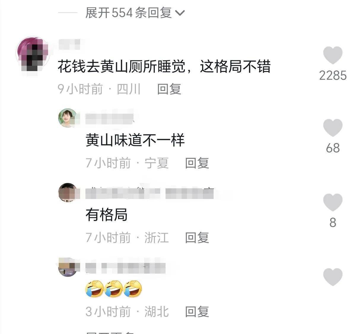 网友评论:花钱去黄山厕所睡觉,这格局打开了。