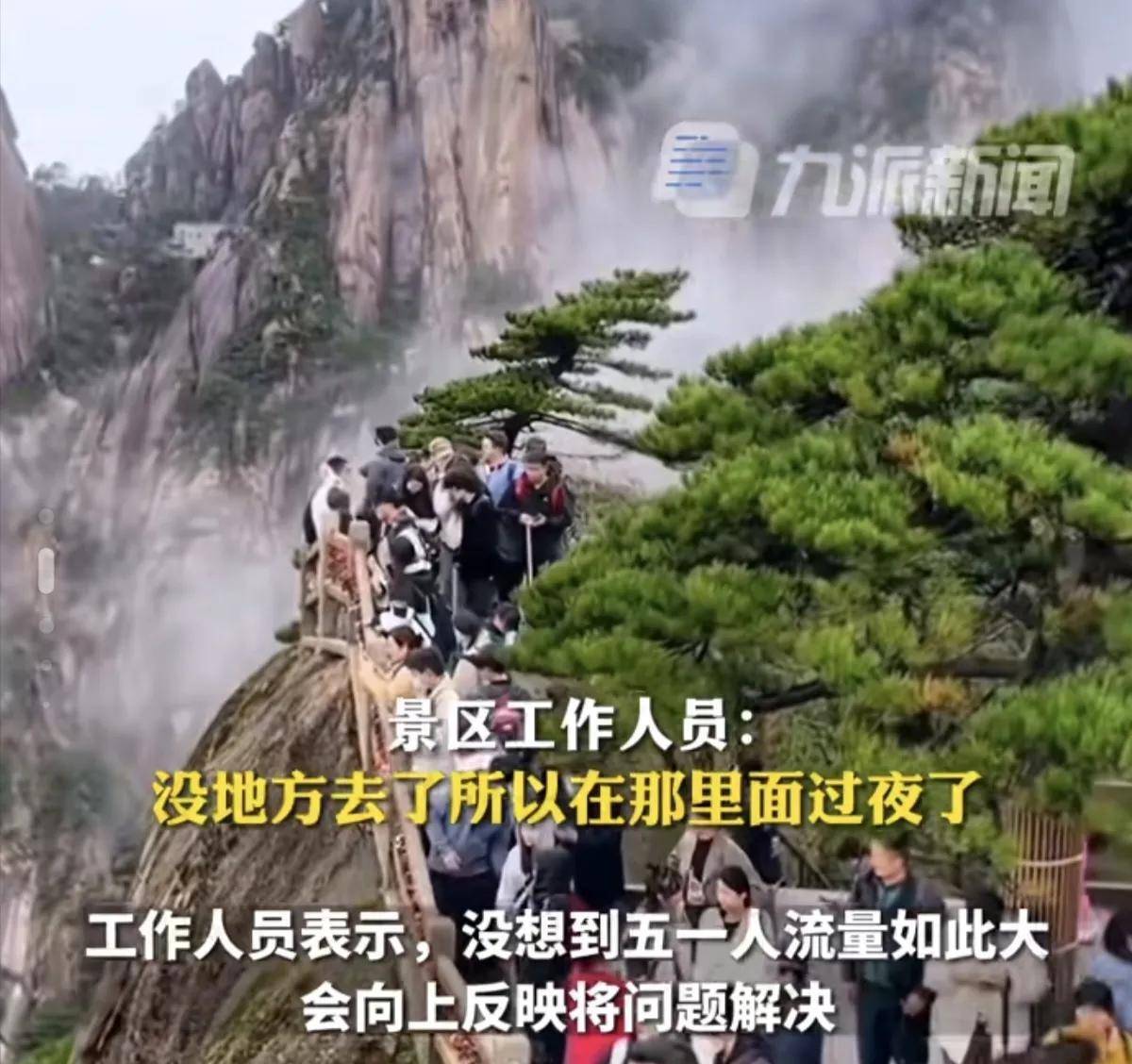 据相关人员称,4月29日,安徽黄山景区因游客爆满,出现了住宿资源紧缺的情况,导致不少游客订不到酒店,他们又错过了下山的时间,没有地方去了,因此不得不挤在公厕里睡觉过夜。