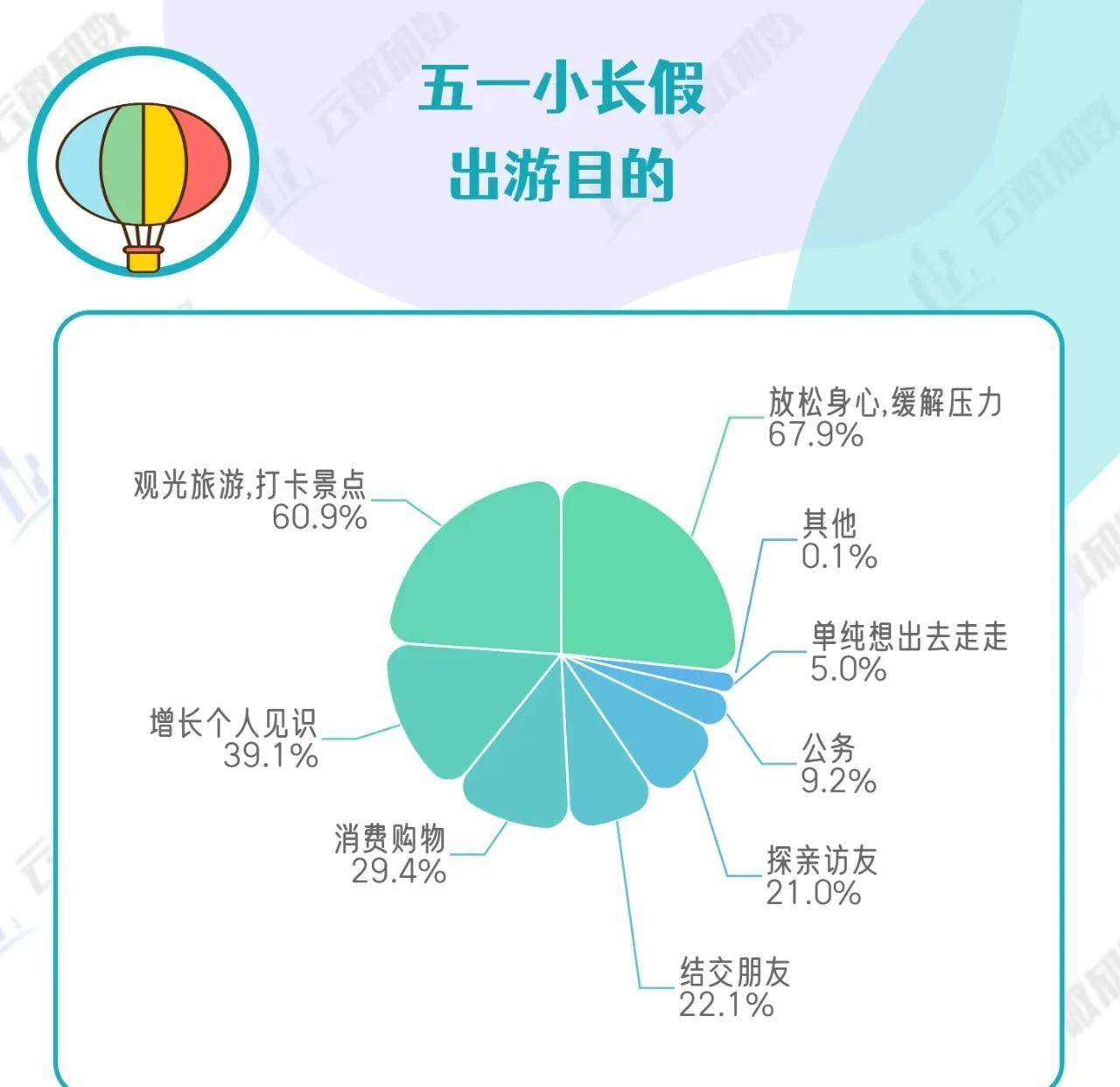 从中可见,放松解压、观光打卡等精神需求是五一出游者的主要目的和主导动机,一定程度上也反映出了五一假期对于出游者精神充电的突出价值,能够让人们缓解压力、恢复精力,并且刺激他们的好奇心和探索欲望。