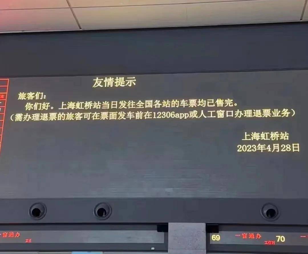 机票预订量远超2019年同期。境内酒店的市场搜索热度也高达2022年同期的9倍。在国内众多景点中,也可以显而易见的看到人们出行的高峰。28日,上海虹桥火车站发布提示,当日发往全国各站车票均已售完,出现了卖空的景象。