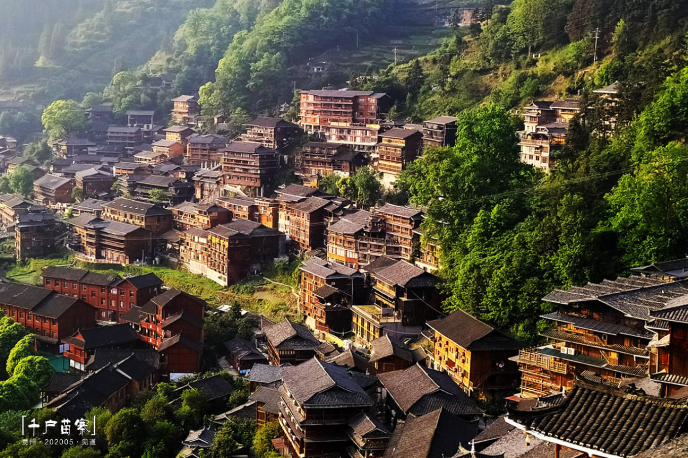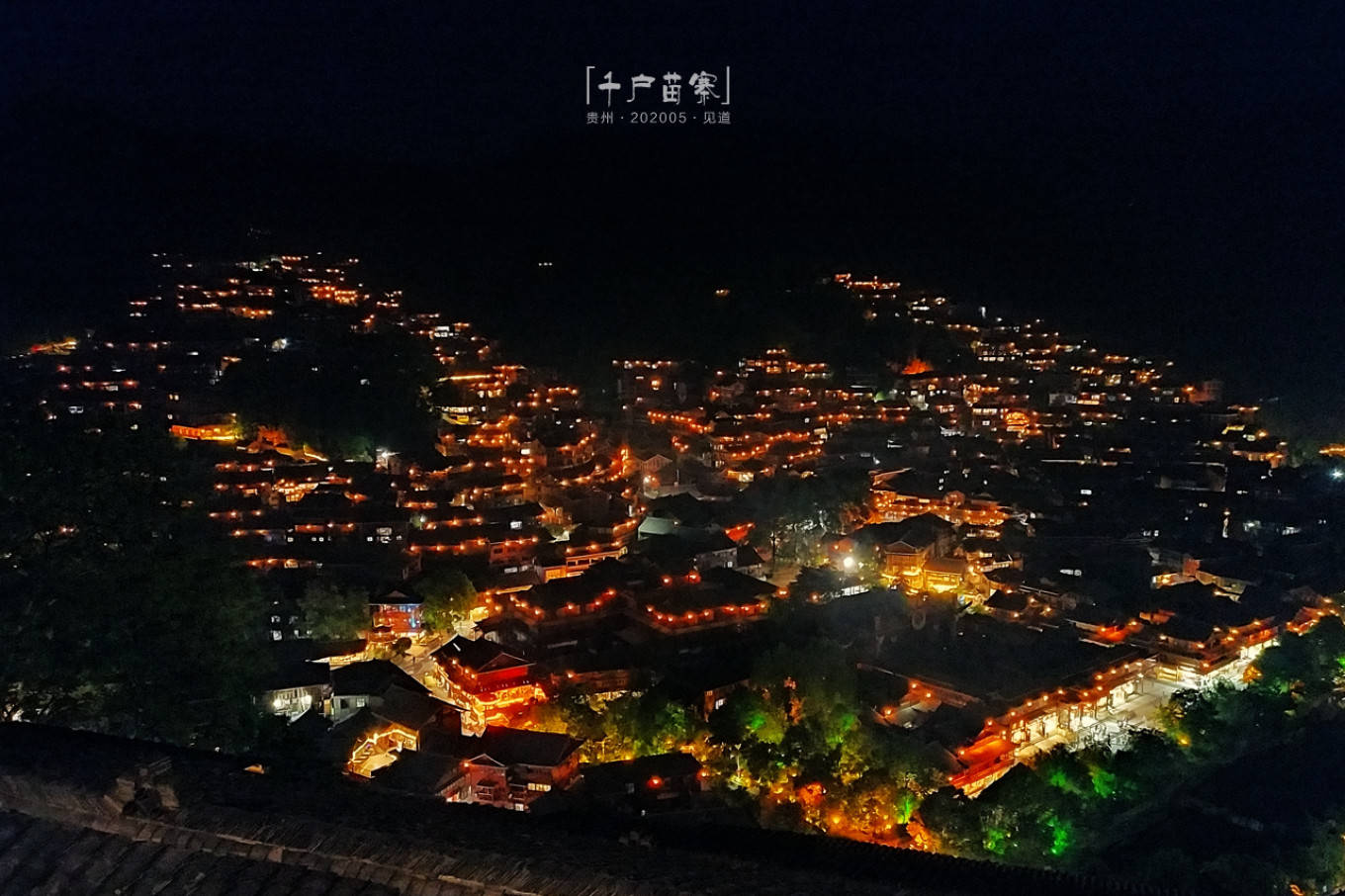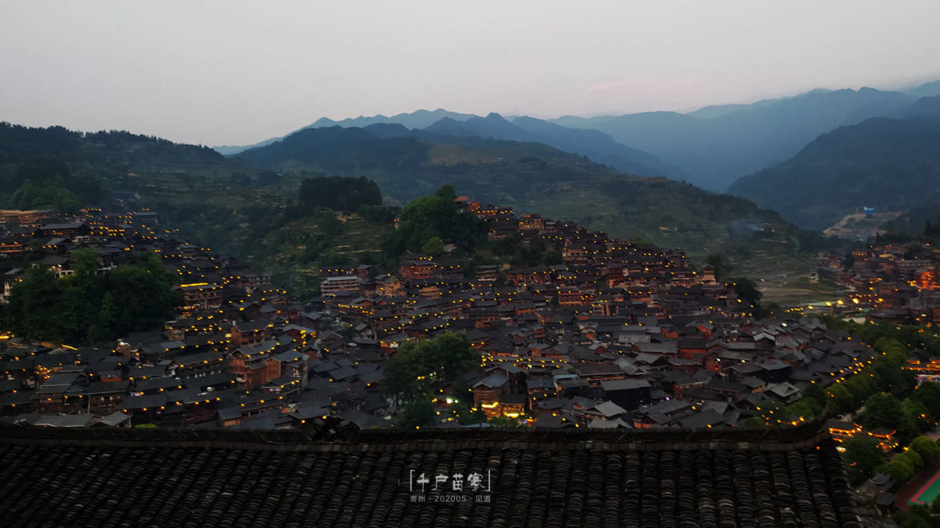 日落时分,万家灯火亮起的时候,西江苗寨变成了灯的海洋。