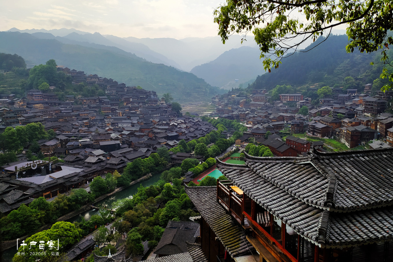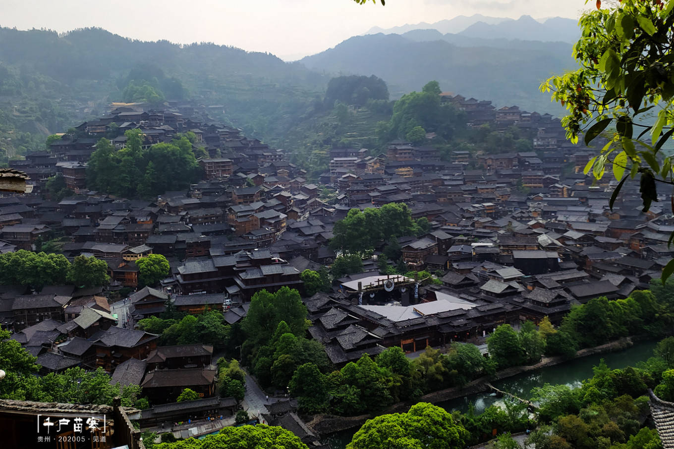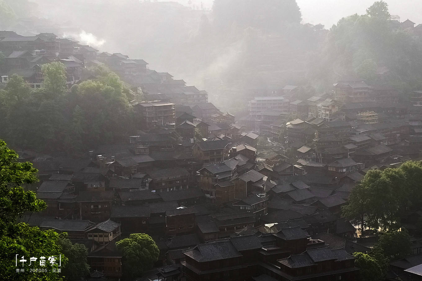 日落时分,万家灯火亮起的时候,西江苗寨变成了灯的海洋。