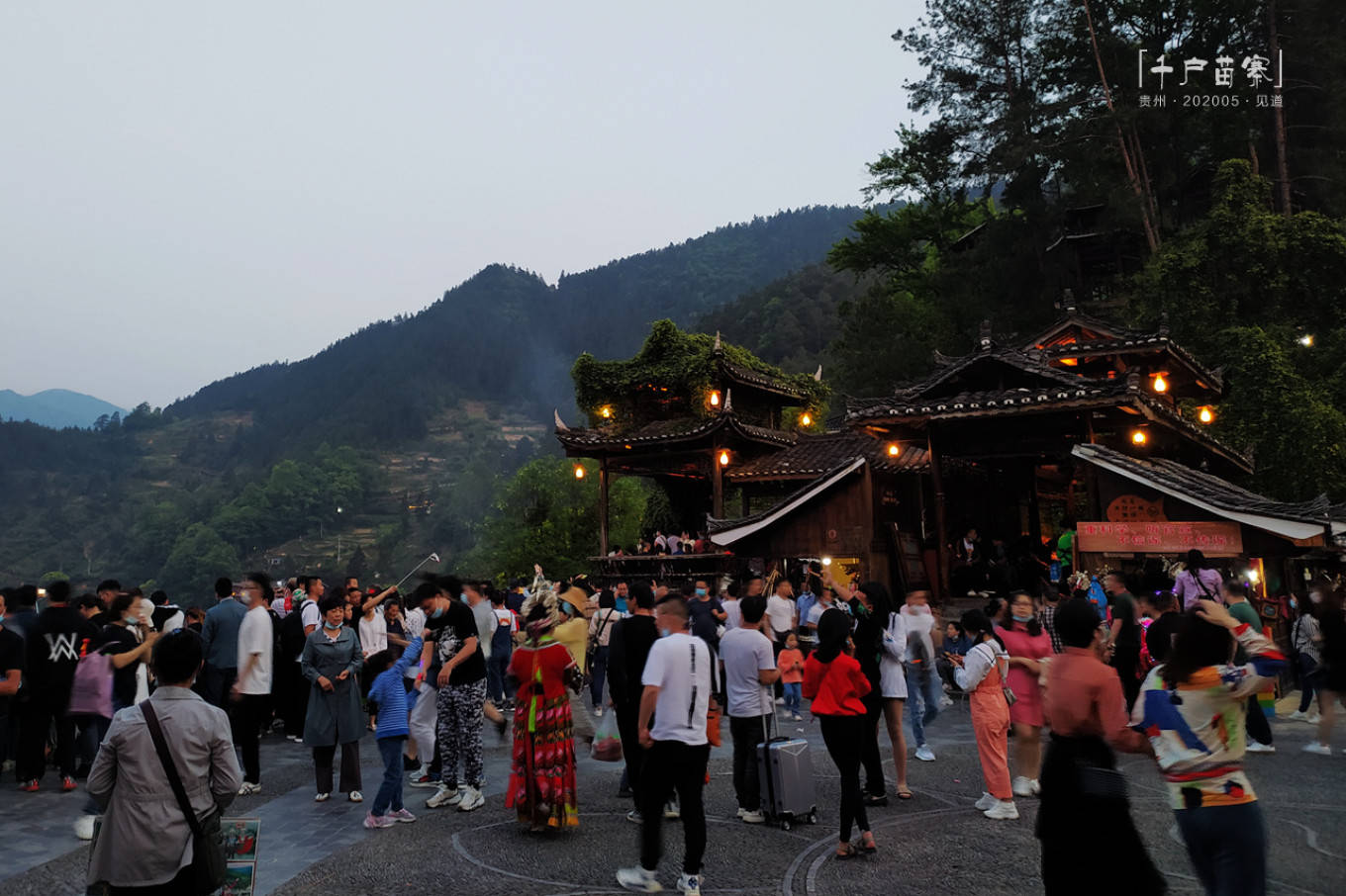 苗寨中间这个装饰特别的场所是表演场。疫情期间很多演出都暂停了。