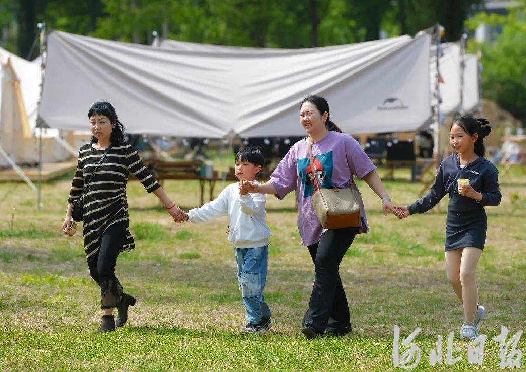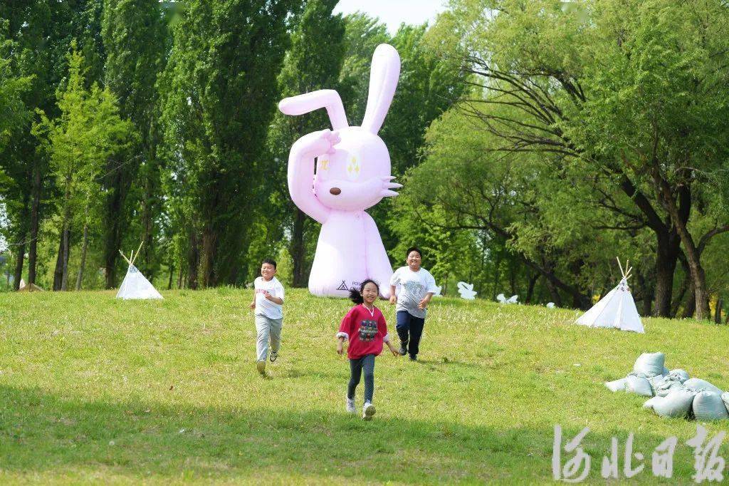 5月1日,小朋友在永清县林栖谷景区开心游玩。