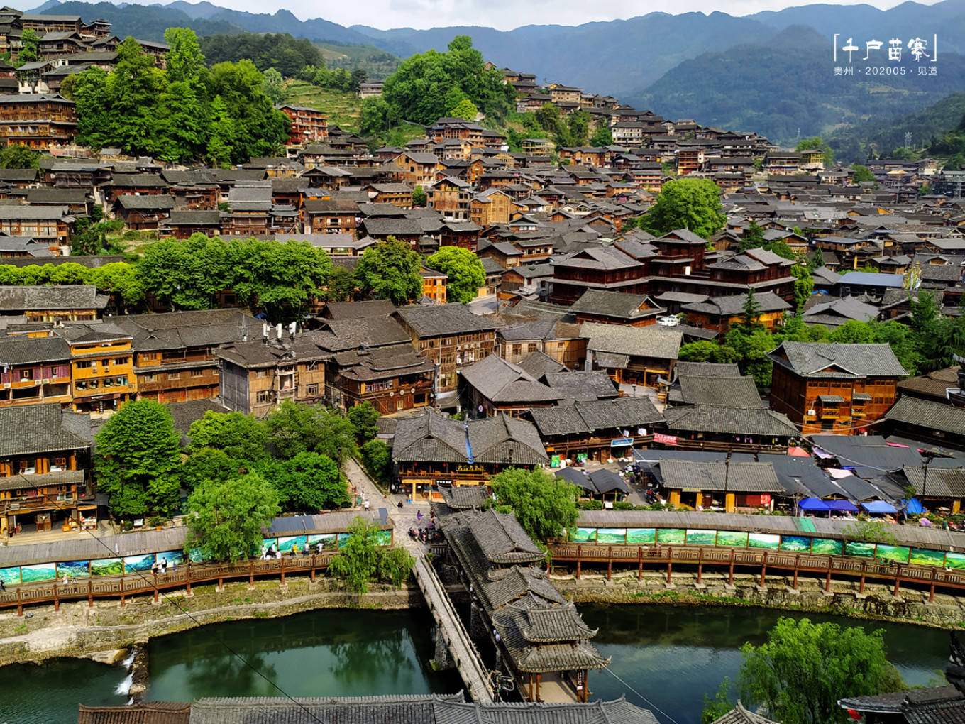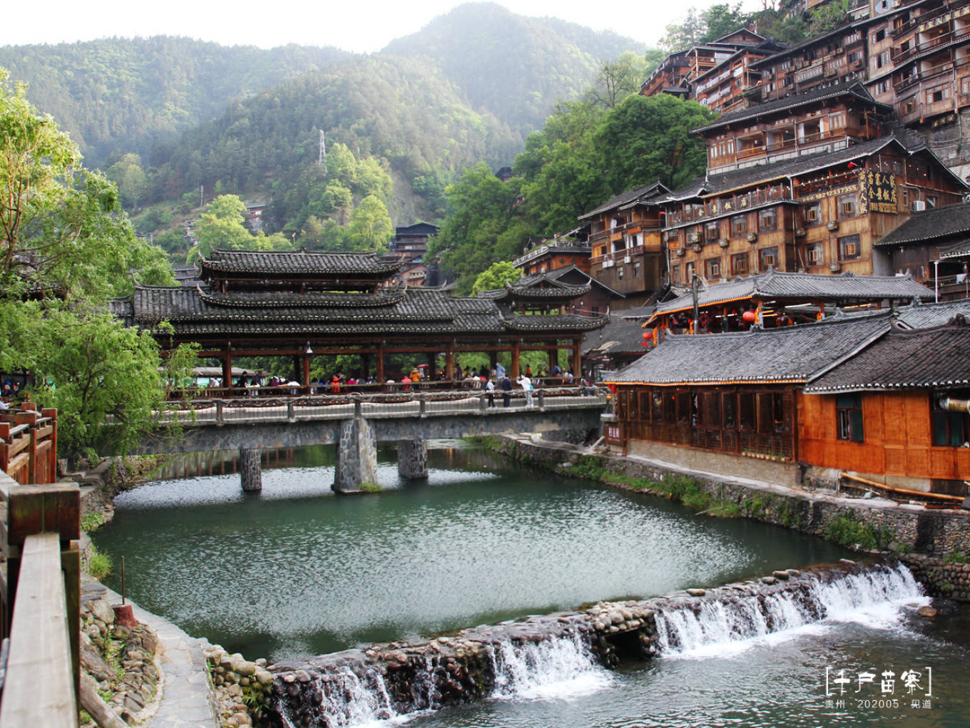 西江苗寨有条河从寨中穿过,叫白水河。河上有7座风雨桥。