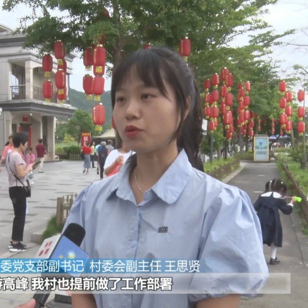 为了应对旅游高峰,我村也提前做了工作部署,景区每天都有交通疏导,(安排)人员进行巡逻,还有环境卫生的清理工作,确保游客来我们这里吃得开心、玩得尽兴。
