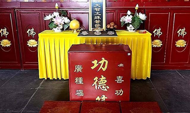 来来往往求神拜佛的香客们将钱财投入功德箱之内,以此来向佛祖和菩萨进贡来表达自己的诚心。