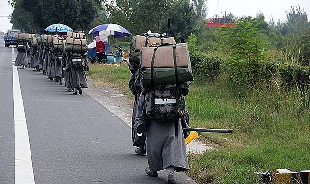尼姑们一行人排成纵队,穿着统一的衣服,在身上背着一个行囊,装着基本的生活用品,在路上一直走啊走,朝着目的地艰难跋涉。