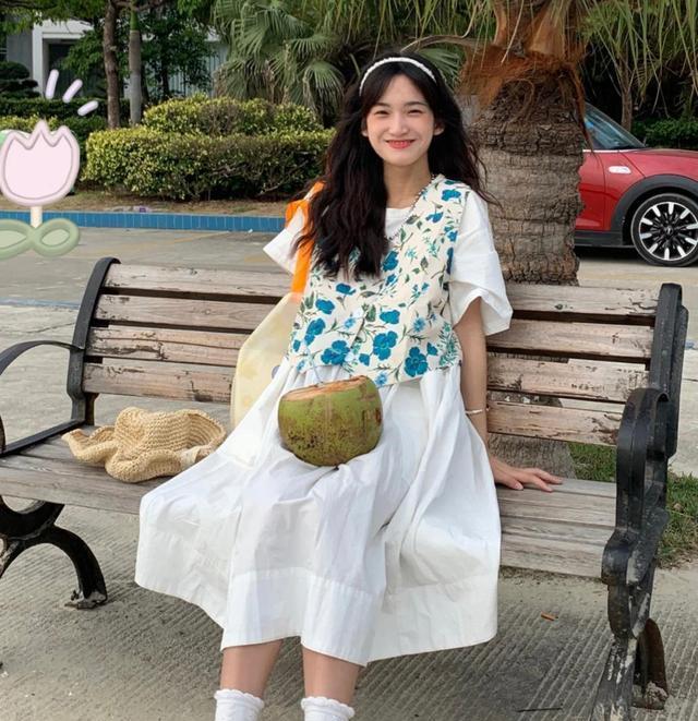 韩系的裙子绝对是大家的心头之爱,这位小姐姐的韩版连衣裙有一种自然蓬松的感觉,颜色上也偏向于小清新,总体来说总是比较舒适的。像这种略微宽松的连衣裙,搭配小马甲的话,也能更好地拉伸身材比例,而且整个风格会更加轻熟一些。不过大家也可以单穿,也可以叠加小马甲,自己喜欢就行。