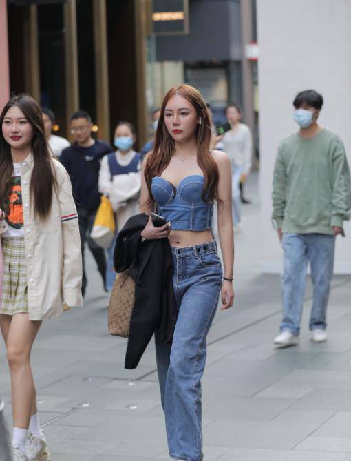 抹身材牛仔上衣搭配牛仔裤肯定是超级时尚,在身材好的时候不穿,以后可能就没有机会了。牛仔裤是非常百搭的,真的是怎么穿都好看。小姐姐搭配这件一字肩的上衣,在酷帅中还透着一丝丝的小时尚。