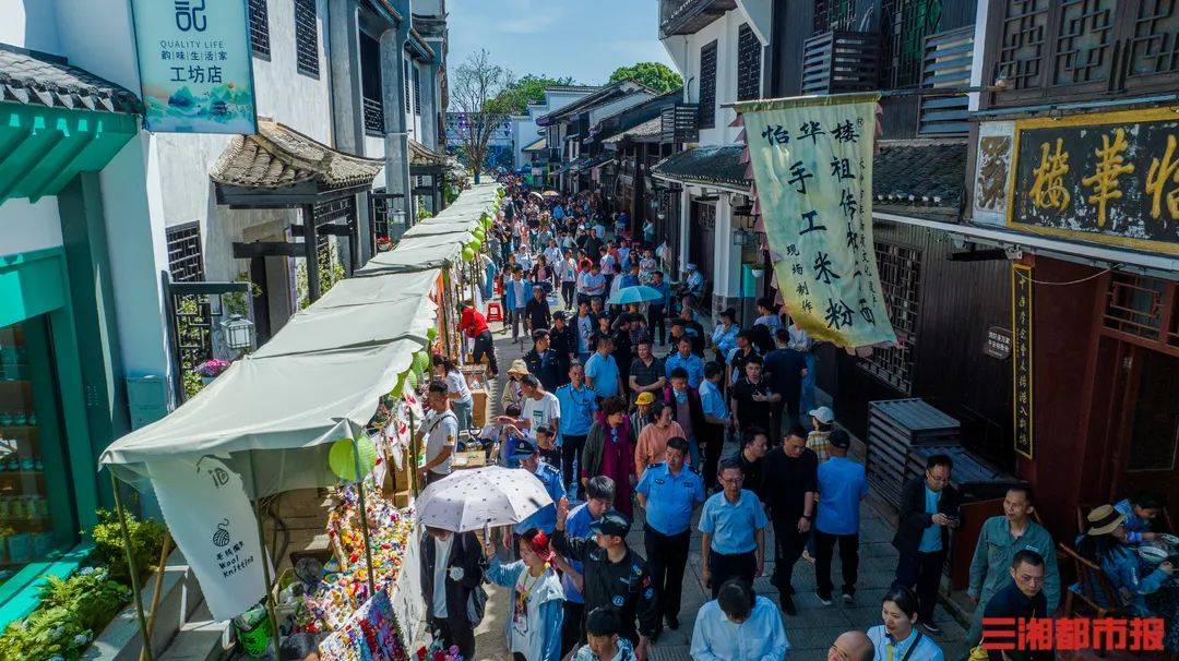 此外,靖港古镇按照“成片组团”原则,以“古镇烟火”“芦江水韵”“靖港的夜”三条主线,通过招大引强、招高引新,吸引了近1亿元社会投资,签约落户的望江楼布鞋产业文化园、麓宿微度假营地、湘绣艺术馆、靖港古镇直播街、电瓶车及游船项目等13个文旅商业将在“五一”集中展示,更多现象级、沉浸式、网红款的旅游产品将亮相靖港古镇。
