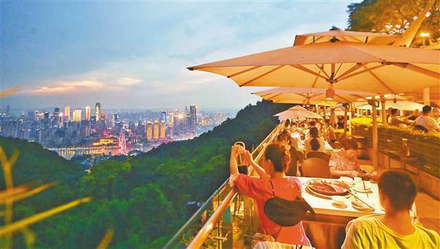 南岸区南山街道,游客正在品尝美食。(重庆日报资料图片)首席记者 龙帆 摄/视觉重庆