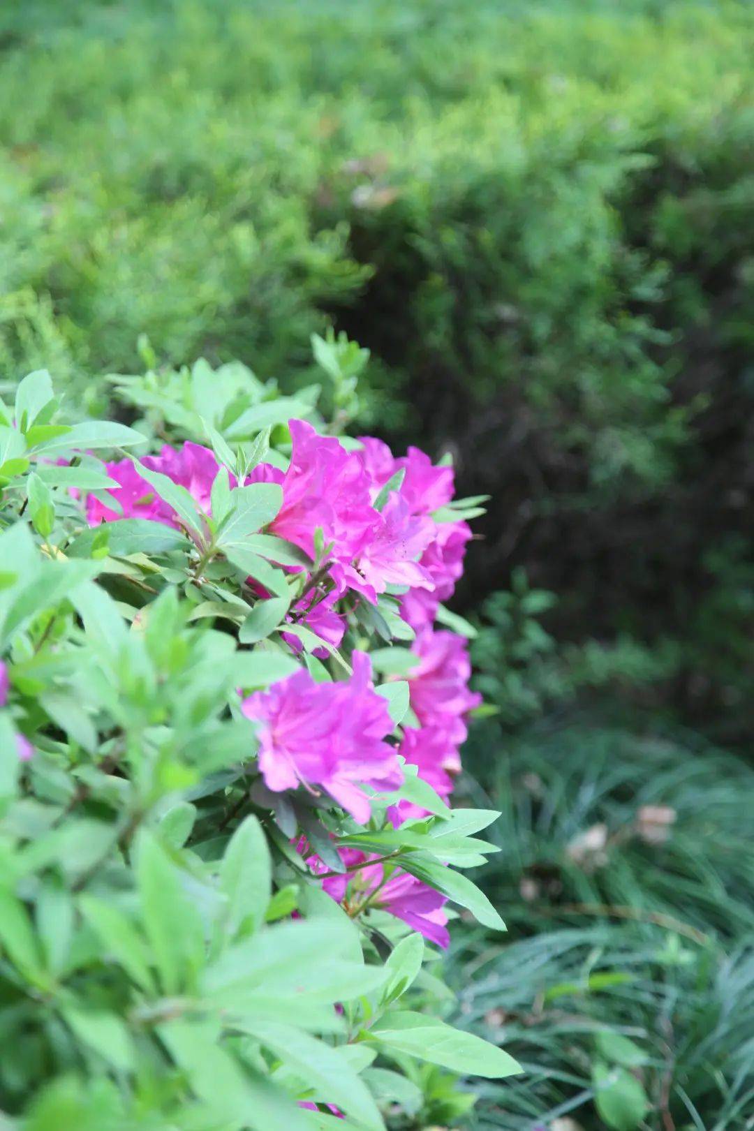 万绿丛中,一片嫣红。 杜鹃花正悄然开放。卵球形花芽,微反卷边缘,鲜明的形态特征便于盲人游客们通过 触摸感受杜鹃花开,争奇斗艳的热闹景象。