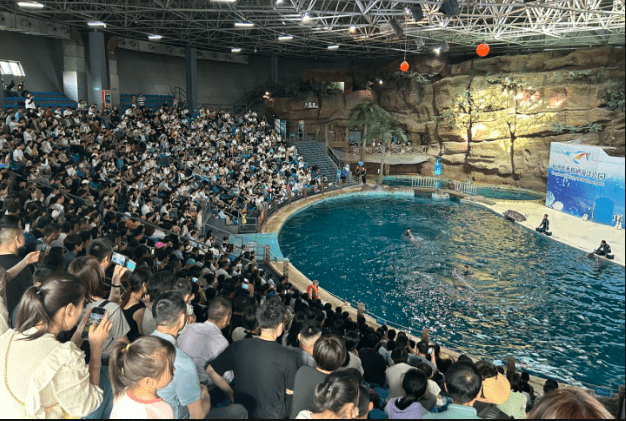 接待人数最能说明问题。5月1日当天,极地海洋公园接待的游客数量达到1.2万人次,已接近历史最高的单日接待量。而平时的双休日,生意好的时候一天的接待量也就四五千人次。