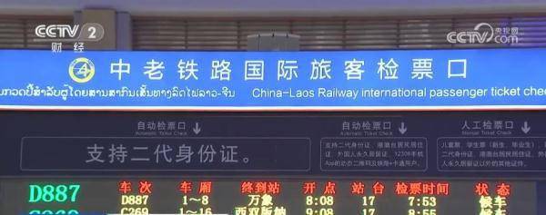 记者范紫霄:现在是中午12时30分,这趟列车已经到达了磨憨站,也是这趟列车在我国境内的最后一站。跨境前往老挝的旅客需要携带全部行李下车办理通关等一些相关手续,然后继续返回这列我们乘坐的D887次列车,通过画面中的友谊隧道,跨越国境,在今天傍晚6时38分抵达老挝首都万象。