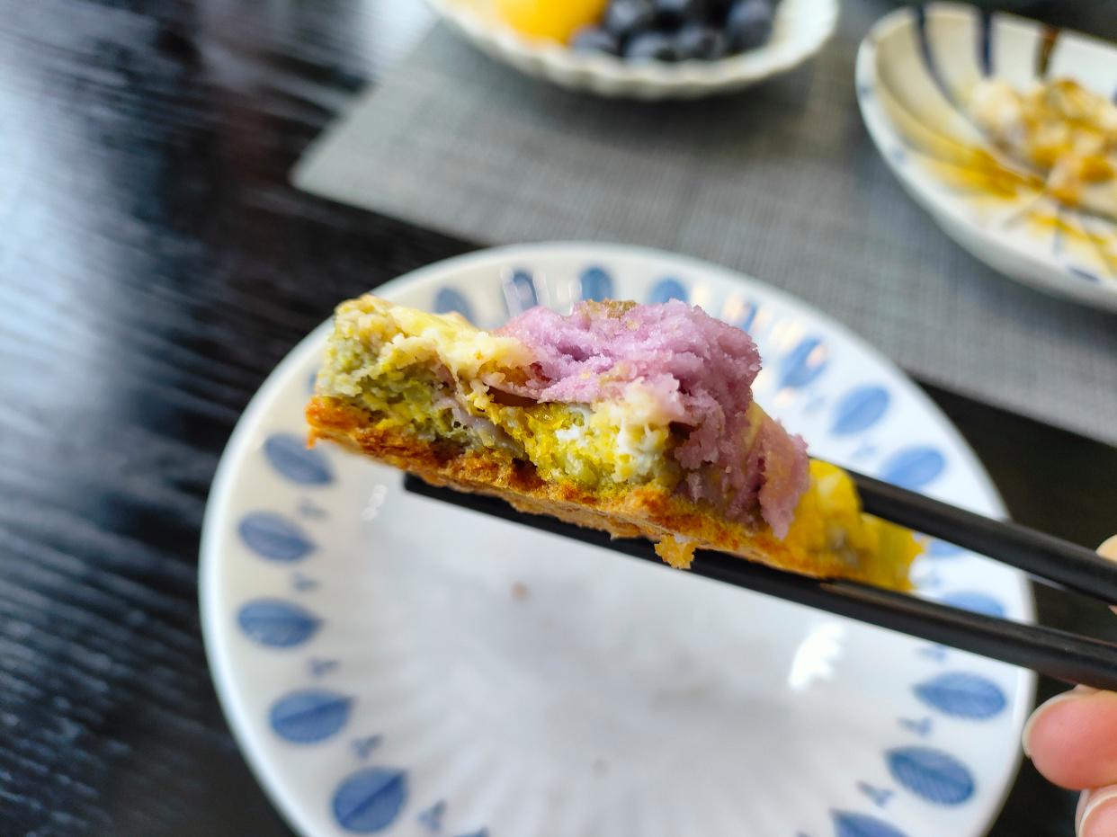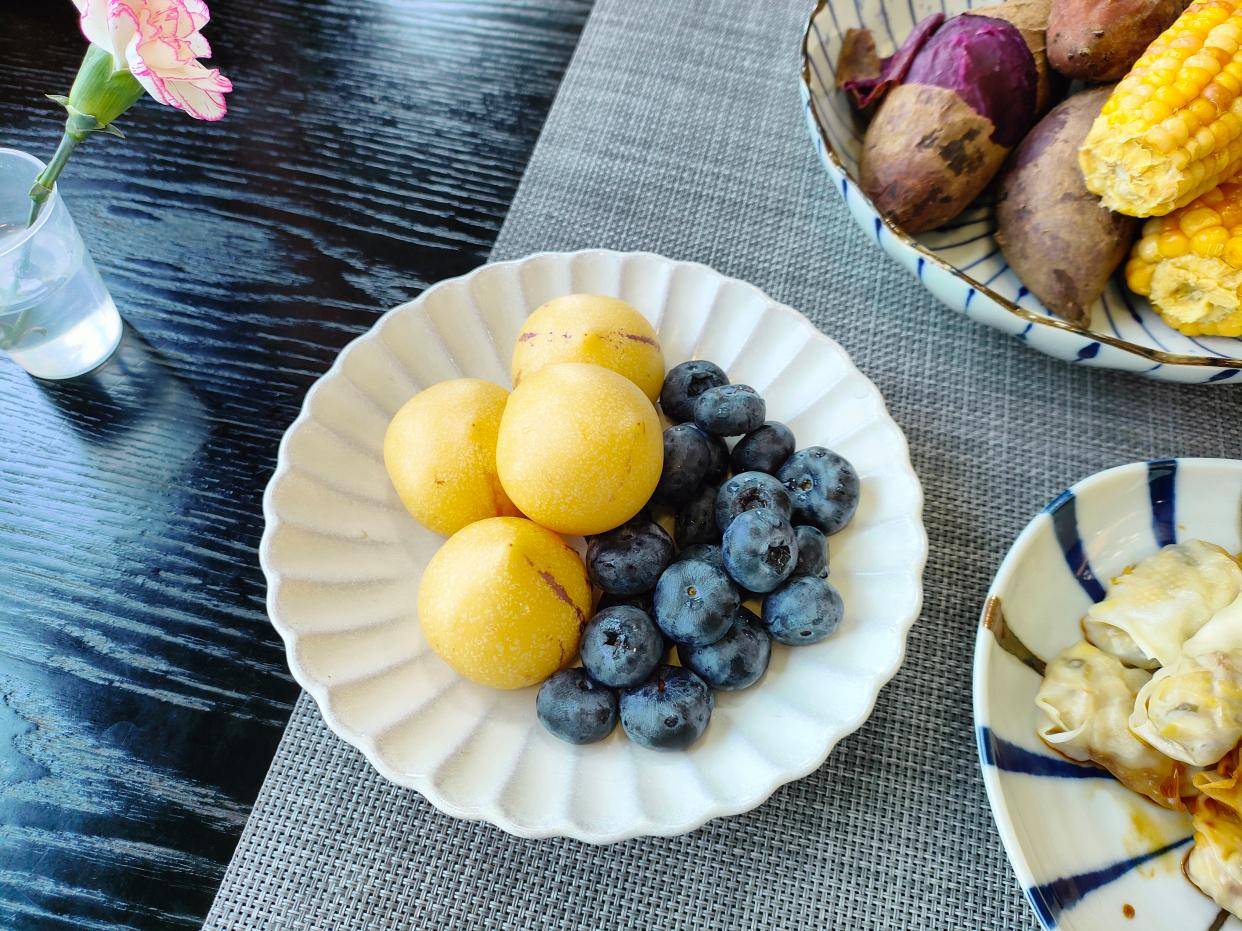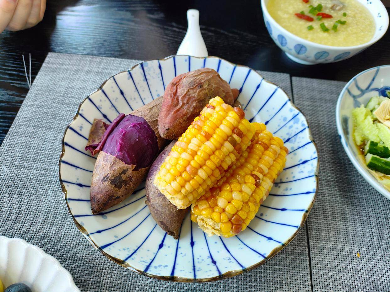 其实,虽然它们名字都叫粗粮,但是气质真的很好吃,一点也不粗。这个紫薯软糯细腻,这个彩色玉米也是又香又糯,两个都带着微微的甜,都很好吃。