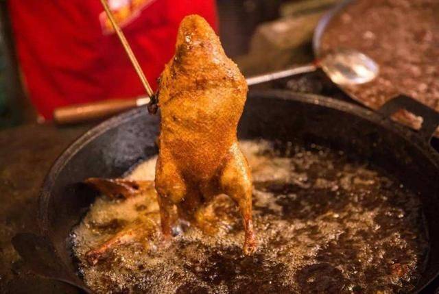 但这种先卤后炸的鸭子,确实有着与烤鸭无限近似的口感,是中国烤鸭的另一种诠释。
