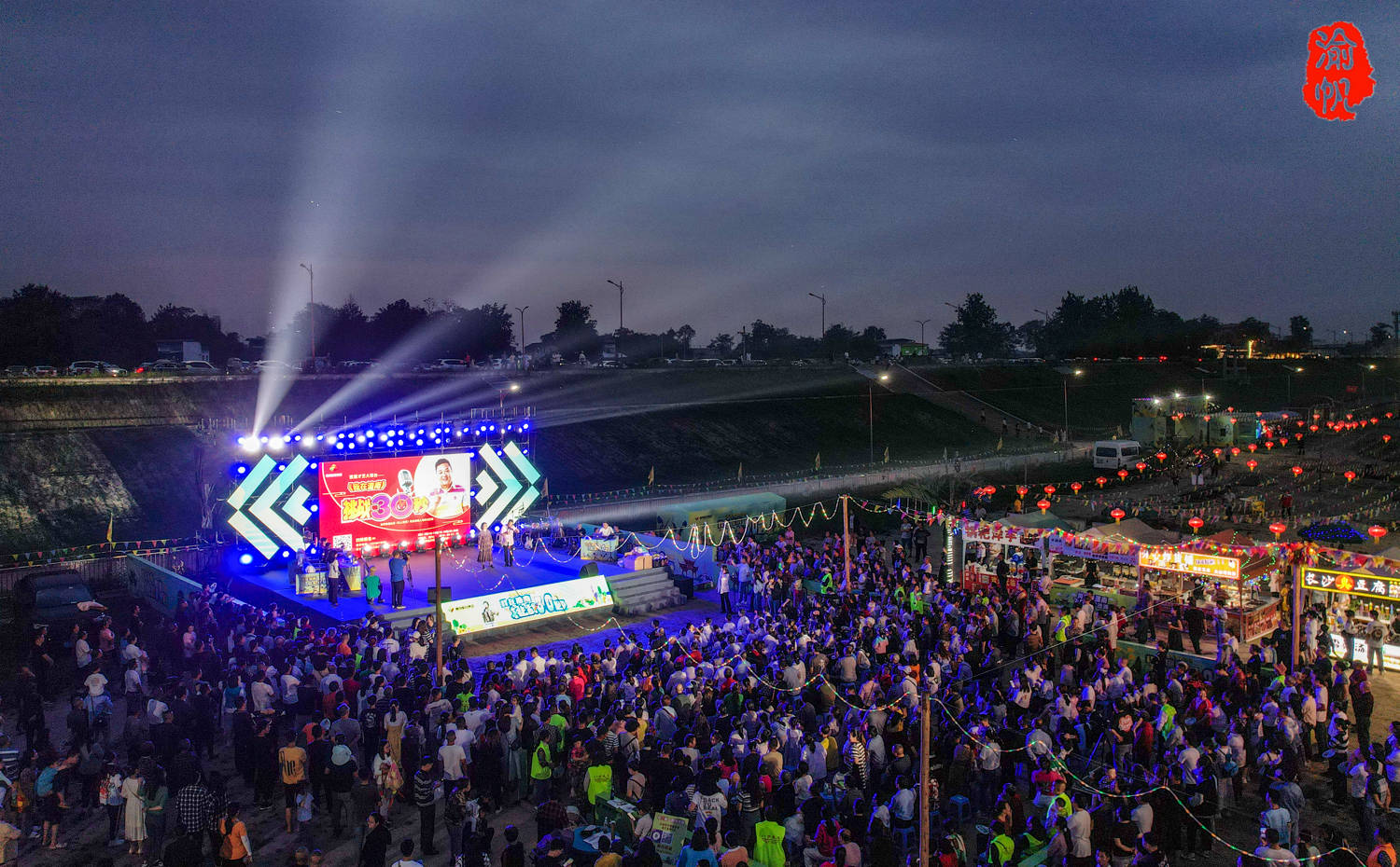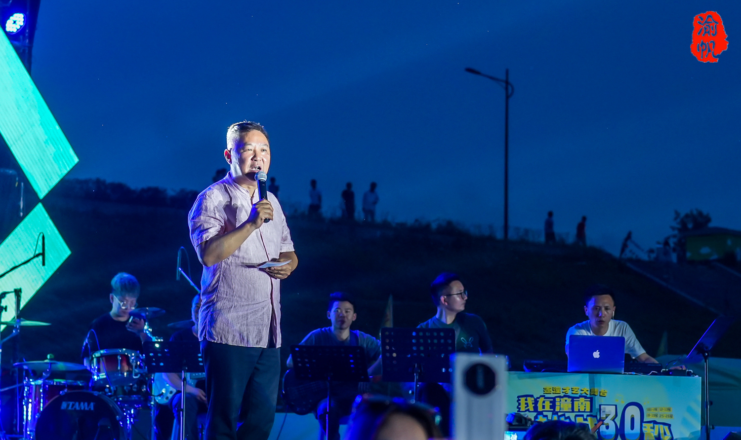 夜幕降临,潼南小三亚开始变得热闹,因为由“刘卫东“扮演者凌淋老师主持的挑战30秒现场K歌大赛正在火热举行,该节目的最大看点是没有门槛,只要有胆就可以上台秀上一场,而且唱得越好,奖金越高。