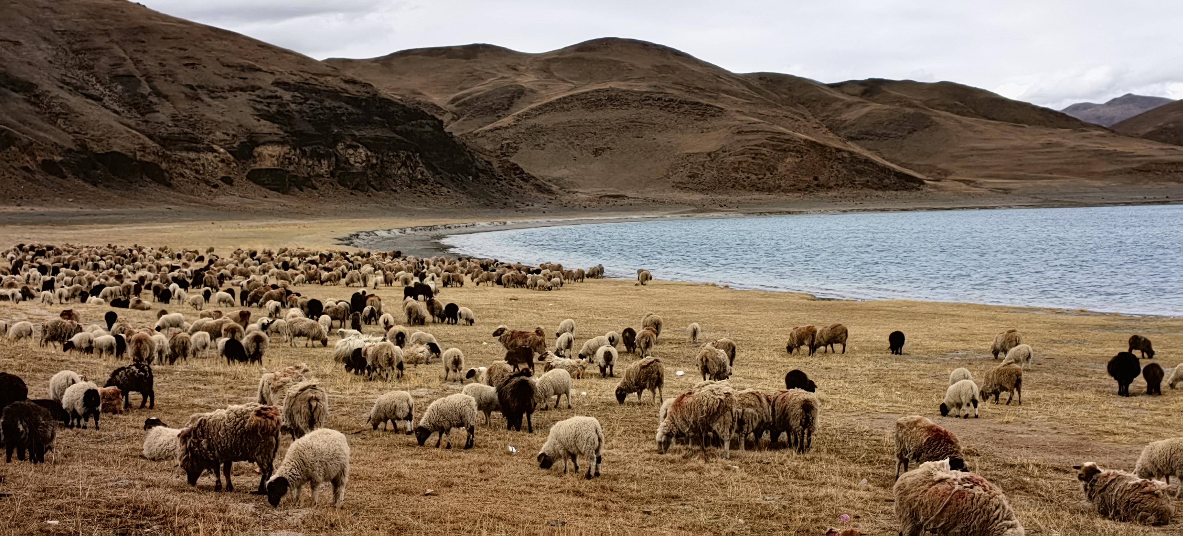 羊卓雍错湖边的羊群(5月1日摄,手机照片)。 新华社记者 沈虹冰 摄